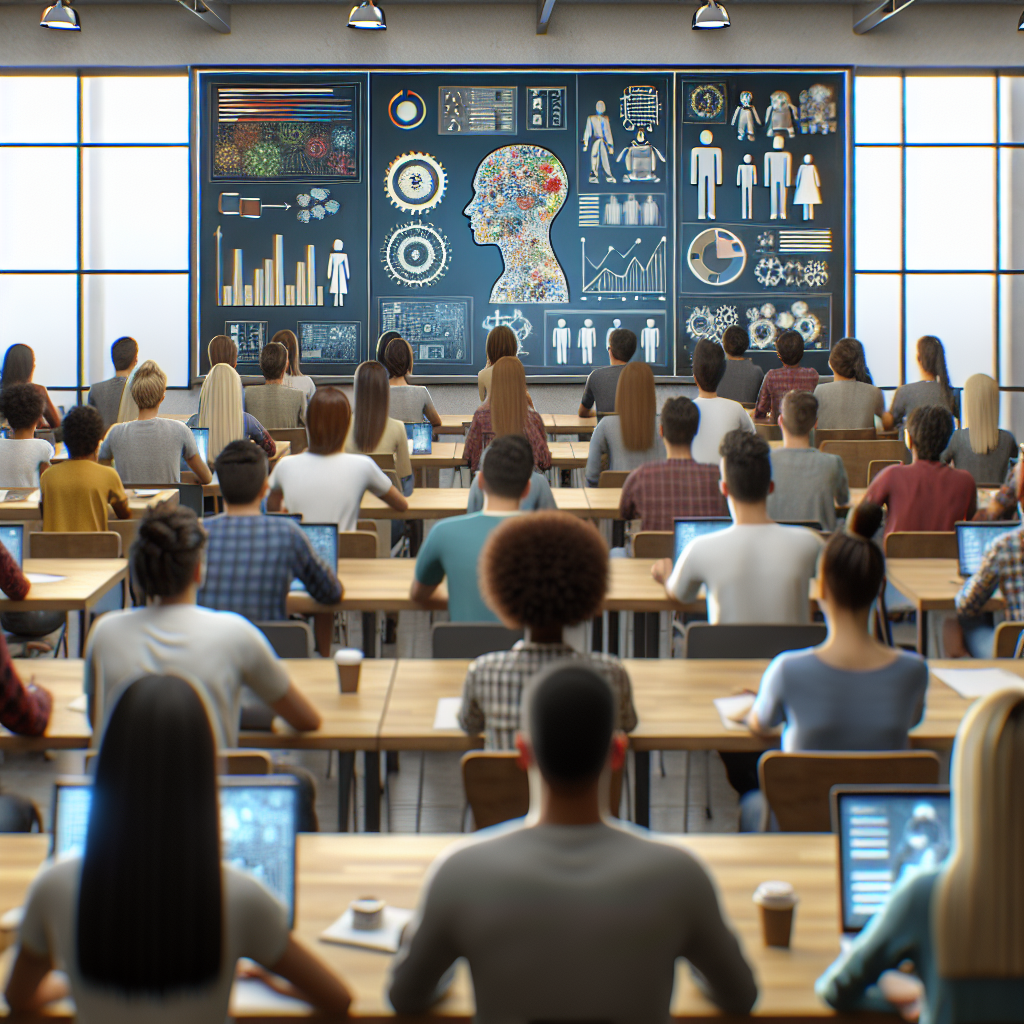כיתה עם משתתפים בקורס AI, מציגה לוח חכם עם תרשימים